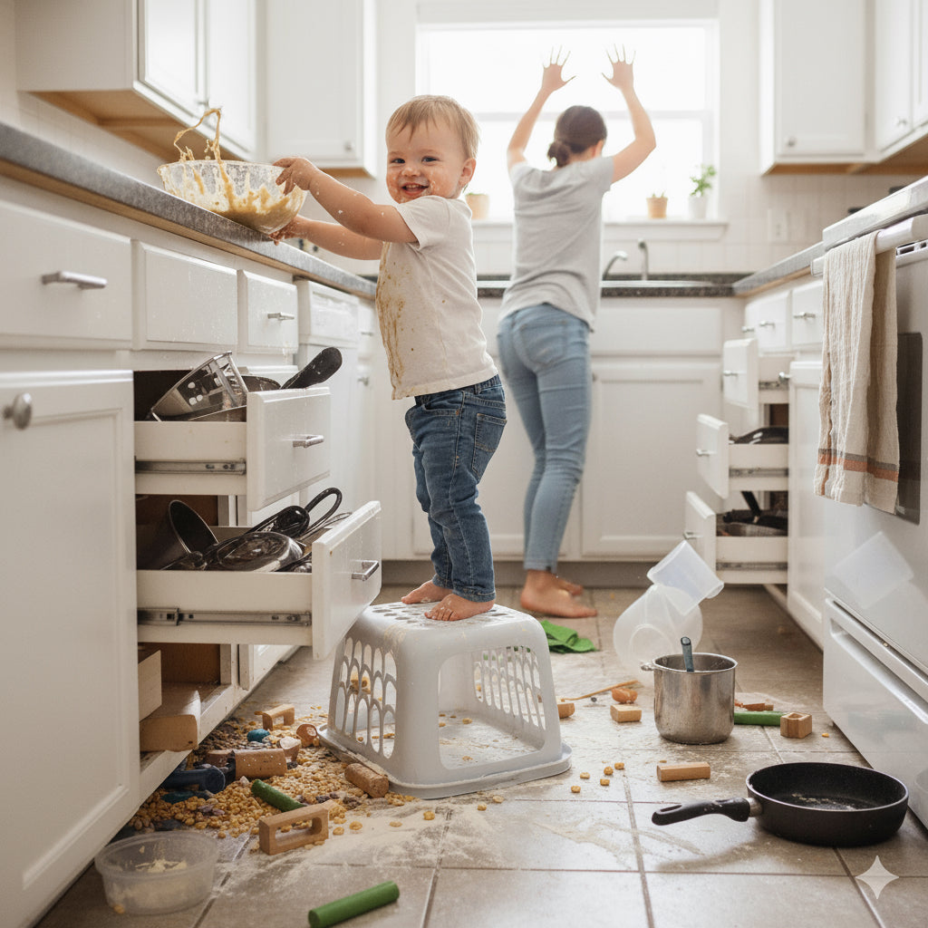Every parent knows the feeling. You’re trying to cook dinner while your toddler climbs a chair or cries to see what’s happening on the counter.